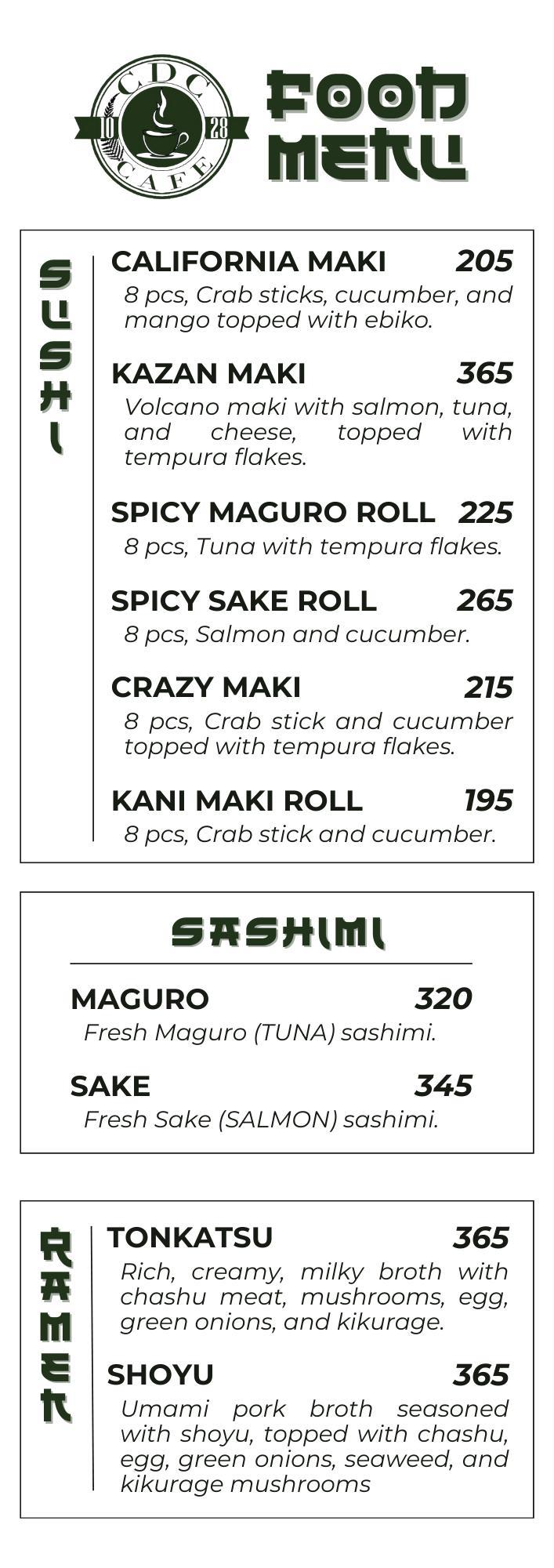 A Coffee Shop located at the City of San Pablo whose goal is to establish an environment and provide a quality experience in which individuals experience delicious food and coffee, reminisce about many special moments, find comfort in both food and nature.STORE HOURS: